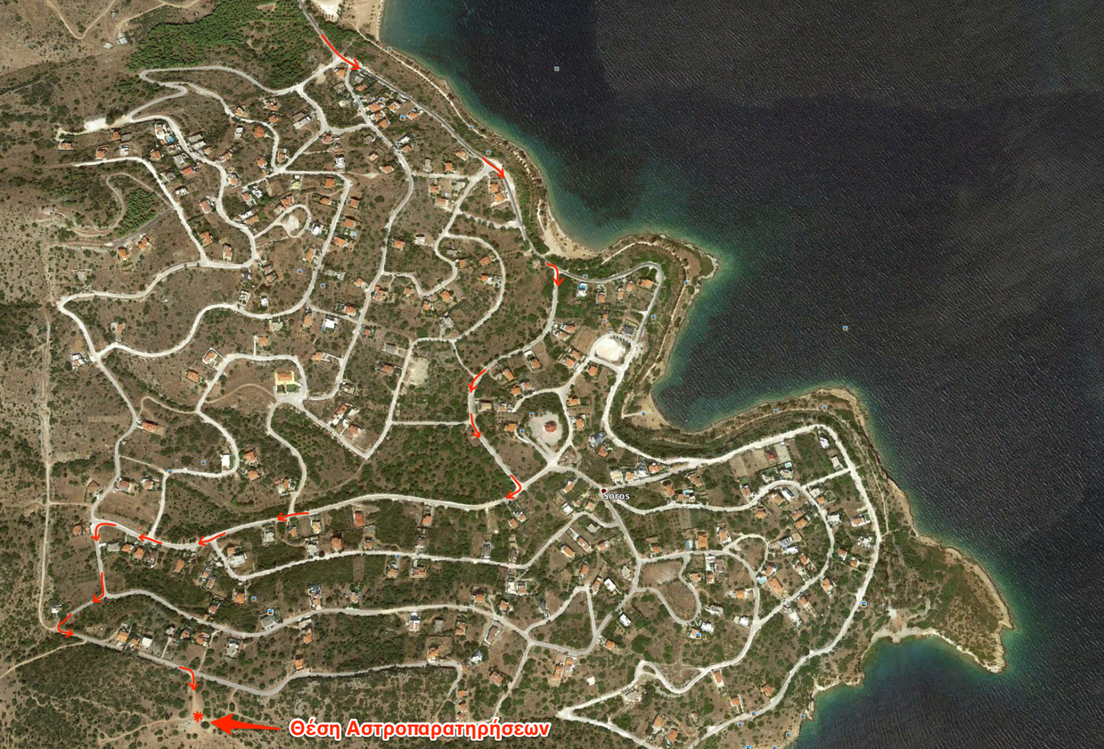 Στο χάρτη σημειώνεται η διαδρομή μέσα από τον οικισμό του Αγ. Στέφανου: