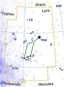 Ανάμεσα στον β και γ- Λύρας βρίσκεται ένας άλλος από τους θησαυρούς του συγκεκριμένου αστερισμού ,το περίφημο Δακτυλιοειδές Νεφέλωμα Λύρας ,Μ 57.
