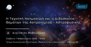 «Δεύτερη ομιλία για το 2026 της Εταιρείας Αστρονομίας & Διαστήματος με θέμα την Τεχνητή Νοημοσύνη και τις διδακτικές της προεκτάσεις» Συνεχίζεται ο κύκλος επιστημονικών ομιλιών